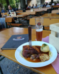 Kao što sam i spomenuo, Brauhaus nudi i tradicionalnu bavarsku hranu. Nakon hrpe azijskih restorana po Njemačkoj, napokon sam se odlučio probati nešto autentično: pečenu svinjsku koljenicu uz koju kao prilog dobijete knedle od tijesta i krumpira i sve to kuhano u finom umaku. Količina je prilično velika, a cijena porcije je 13,50 €. Ako imate prilike, svakako probajte.