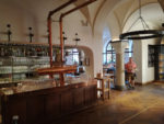 Morao sam zaviriti i u unutarnji prostor koji je uređen u tradicionalnom, rekao bih minimalističkom stilu. Drveni stolovi, crni srednjovjekovni lusteri i bakrena mašina za kuhanje piva koja je spojena cijevima na točionik unutar šanka. U staklenim vitrinama koje se nalaze u hodniku na putu od glavne hale prema kuhinji i ujedno izlazu prema pivskom vrtu čuvaju se primjerci nekih nagrada iz povijesti pivovare, kao i suveniri Paulanera koje možete kupiti za uspomenu.