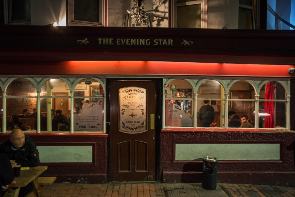 Kako bilo valjalo nam je poći put željezničke stanice, taman smo imali vremena za posjet još jednom pubu koji se nalazi točno preko puta iste. Vjerujem kako neću pretjerati ako Evening Star nazovem brightonskom institucijom. U podrumu ovog puba 1994. godine s radom je počela pivovara Skinner’s Brewery. Kako je pivovara pod tim imenom već postajala u Cornwallu, bili su prisiljeni promijeniti ime u ono pod kojim ih znamo danas – Dark Star. Iako su nekako pali u zaborav pod naletom novih pivovara, Dark Star je jedna od prvih pivovara koje su koristile američke hmeljeve, po mom mišljenju vrlo uspješno, jer su mi njihova piva ostala u lijepom sjećanju. Naravno, pogon i prostor nisu zadovoljavali njihove potrebe s obzirom na kvalitetu i popularnost tako da su uslijedile dvije selidbe u veće pogone. Ipak, nisu zaboravili svoje početke, tako da je Evening Star danas u njihovom vlasništvu. Radi se o relativno malom, jednosobnom pubu, koji se čini omiljen među lokalcima, jer je za našeg posjeta bio krcat. Srećom mladić koji je u kutu čitao knjigu bio je dovoljno ljubazan da nas primi za stol tako da smo pošteđeni stajanja nasred prostorije.