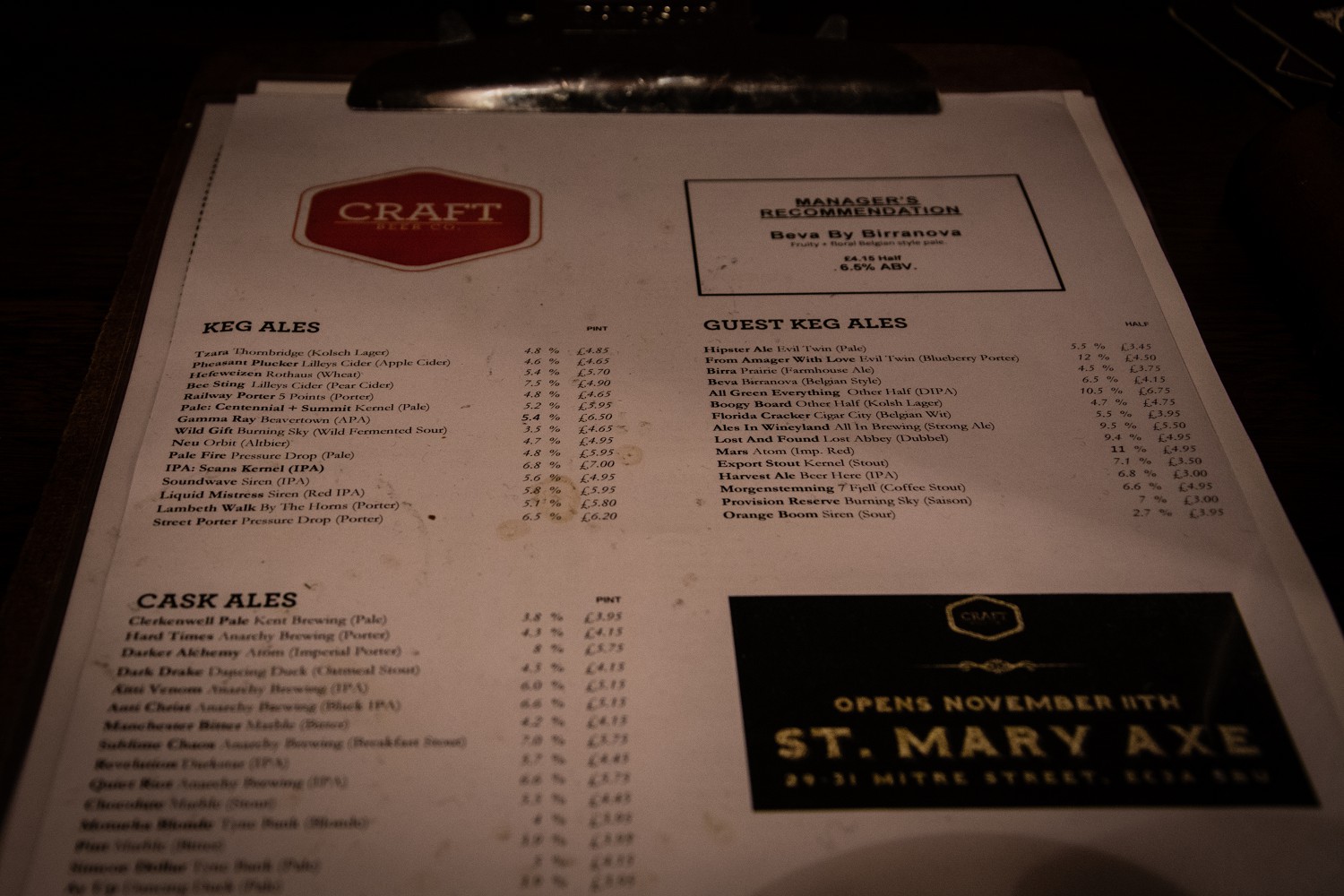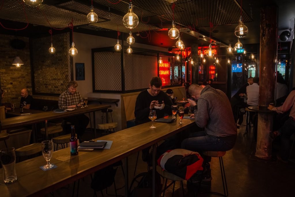 Craft Beer & Co Covent Garden prostire se na 2 kata, no gornji kat je izdužen i poprilično uzak i vrlo brzo nakon našeg ulaska nastala je gužva. Zato u podrumu nije bilo nikoga tako da smo se mogli raskomotiti. U ponudi je čak 45 točenih piva (mislim najviše u Londonu) od čega 15 caskova te 200-injak boca. Izvrsna ponuda engleskih pivovara (pažnju su mi privukli Atom i Burning Sky) te vrlo solidna selekcija uvoznih piva. Uz to ima izvrsnu ponudu žestokih pića. Vjerojatno najbolji pivski bar u centralnom dijelu Londona.
