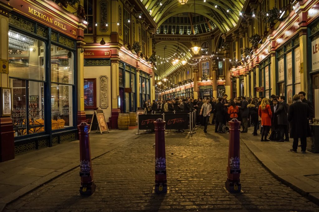 Uvečer nas je put nanio u City. Uredi su se polako praznili, a kako je bio petak, ekipa iz ureda polako je punila okolne pubove. Vreva u Leaden Hall Marketu djeluje živo, toplo, čarobno – dođe čovjeku da se pridruži gomili ljudi u odijelima koji neobavezno ćaskaju ispred puba. Jasno je zašto je ovaj prolaz iz 14. stoljeća poslužio kao kulisa za filmove (među ostalima i za Harry Potter i Kamen Mudraca).