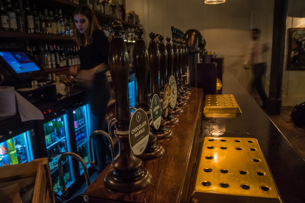 U potrazi sam za još jednim Craft Beer & Co pod nazivom St. Mary Axe, međutim u jednom momentu uspijevam se pogubiti. Trik je u tome što je St Mary Axe ime ulice u kojoj se nalazi Gherkin, no sam pub nalazi se nekoliko ulica dalje, u Mitre Street. Srećom, zabuna nije dugo trajala te sam locirao friško otvorenu podružnicu mog omiljenog lanca pubova u UK. Unutra je publika poprilično drugačija od ostalih pubova koje sam posjetio, gotovo isključivo ljudi u odijelima. Bez obzira na dress code, nema prevelike uštogljenosti, veselo se ćaska uz pivo, tako da se ipak nisam osjećao kao prase u Teheranu. Srećom, ostatak ekipe mi se pridružio nedugo nakon ulaska tako da je moglo krenuti probijanje kroz 27 točenih piva. I ovaj Craft Beer & co proteže se na 2 kata, a zidovi su u cigli i drvu. Pomalo industrijsko uređenje, ali namještaj je kombinacija drva i kože tako da djeluje toplije od na primjer Brewdoga. Za našeg posjeta dominirale su domaće pivovare, samo 4 kega bila su uvoz. Oduševio me Partizan Saison Raspberry Lemon, vrlo voćno i osvježavajuće pivo, vjerujem da bi savršeno pasalo na vruć ljetni dan. Potpuno drugačiji bio je Duggesov Idjit, vrlo dobar imperial stout, možda mrvicu presladak za moj ukus. Kod posjete ovom pubu treba voditi računa da, kao i većina pubova u Cityu, ne radi vikendom. Razlog je vrlo jednostavan – City je vikendom pust jer u uredima nema nikoga. Ostaje za vidjeti hoće li pub s ovakvom ponudom piva opstati s takvom politikom.